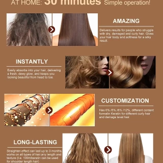 This keratin treatment is specially designed for all hair types, rejuvenating even the most damaged locks. It works by infusing each strand with essential proteins that restore strength while taming frizz and flyaways. The lightweight formula ensures that your hair feels soft without being weighed down, promoting silky smoothness and unparalleled shine. Plus, it’s easy to apply! Just follow a few simple steps for stunning results.